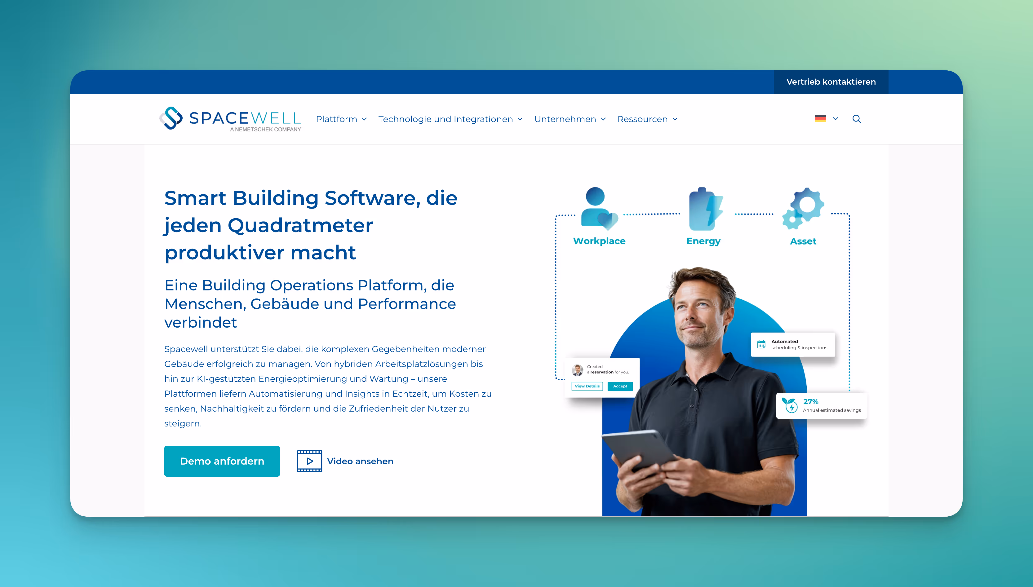 Spacewell is a Belgian provider of smart building and workplace software. The platform combines room booking, IoT sensors, and office analytics and is aimed at companies that want to manage space utilization, work environments, and building operations in a unified manner.