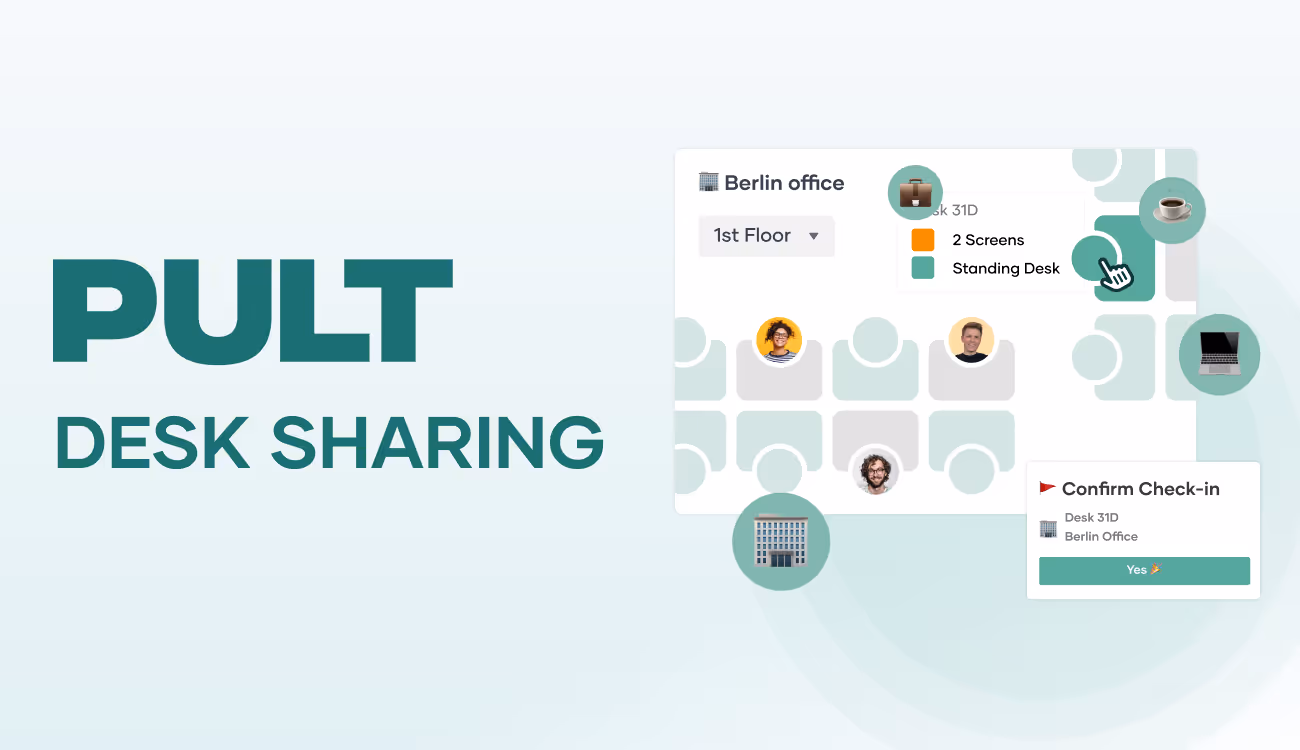 The use of suitable desk sharing software replaces reservation lists on meeting room doors and ensures that workstations can be booked fairly and reliably. With PULT, every employee can be sure that they will actually find the desired space free after their commute to work. The most important functions at a glance: