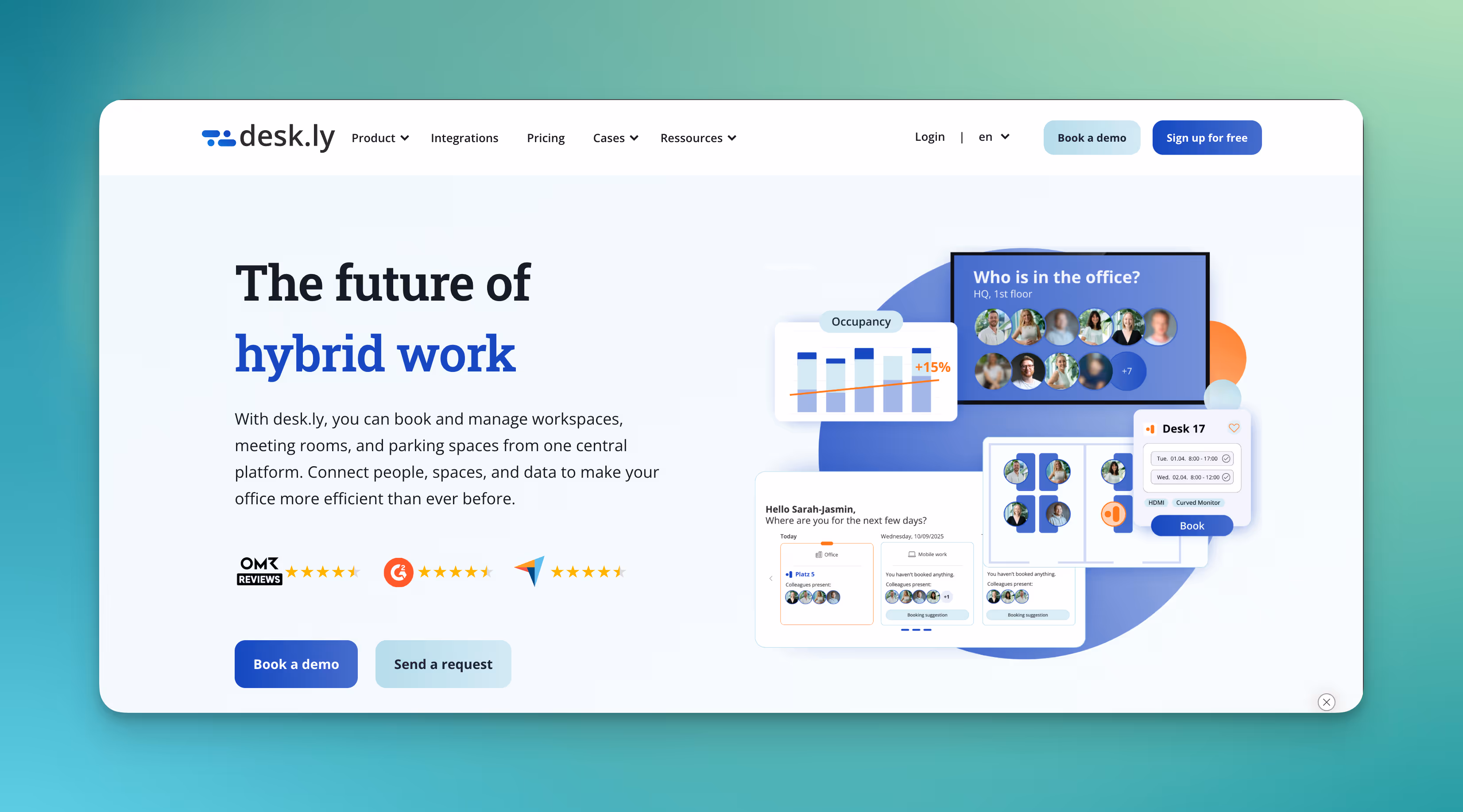 desk.ly ist eine deutsche Software für Arbeitsplatzmanagement, die Unternehmen bei der Organisation ihrer Büroflächen unterstützt. Die Anwendung ist auf einfache Bedienung, Übersichtlichkeit und eine sichere Datenverarbeitung in Deutschland ausgelegt.