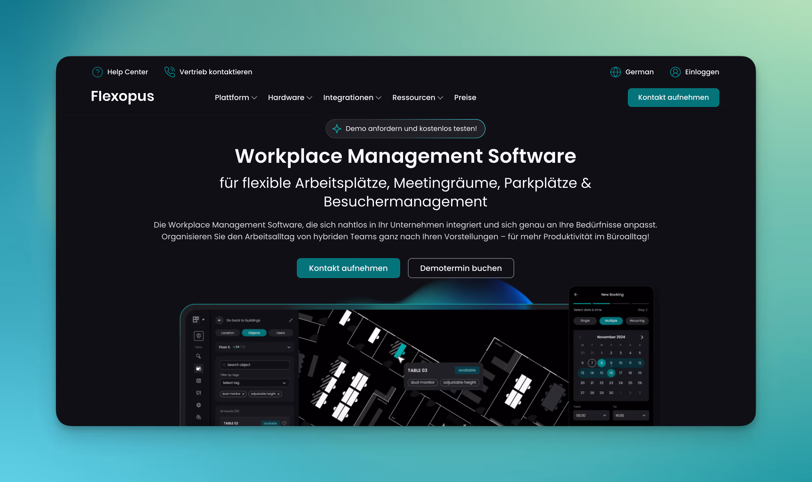 - Raum- und Arbeitsplatz-Displays: Flexopus bietet eigene Hardwarelösungen zur Anzeige von Buchungsstatus und Check-ins direkt vor Ort.