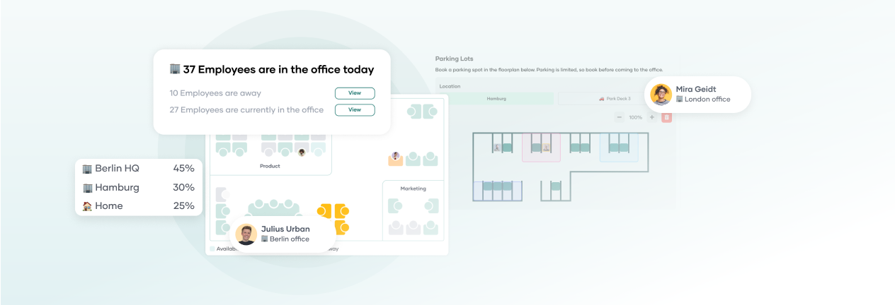 PULT ist unsere Software für Arbeitsplatz- und Raumbuchung sowie automatisierte Anwesenheitserkennung. Sie dient vielen Arbeitgebern als Plattform, um deren Fürsorgepflicht sicherzustellen. Die Software enthält Funktionen für Ergonomie, Notfallmanagement und Gesundheitsschutz: