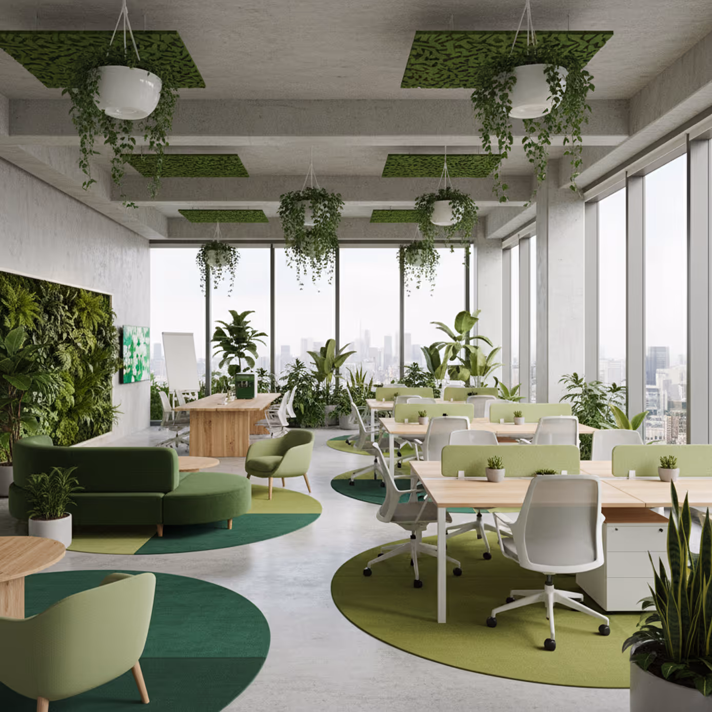 Die Akustik lässt sich durch schallabsorbierende Materialien, Teppiche, Raumteiler oder große Pflanzen verbessern. Eine einfache, aber wirkungsvolle Ergänzung sind Verhaltensregeln, die laute Gespräche oder Meetings am Arbeitsplatz ausschließen.