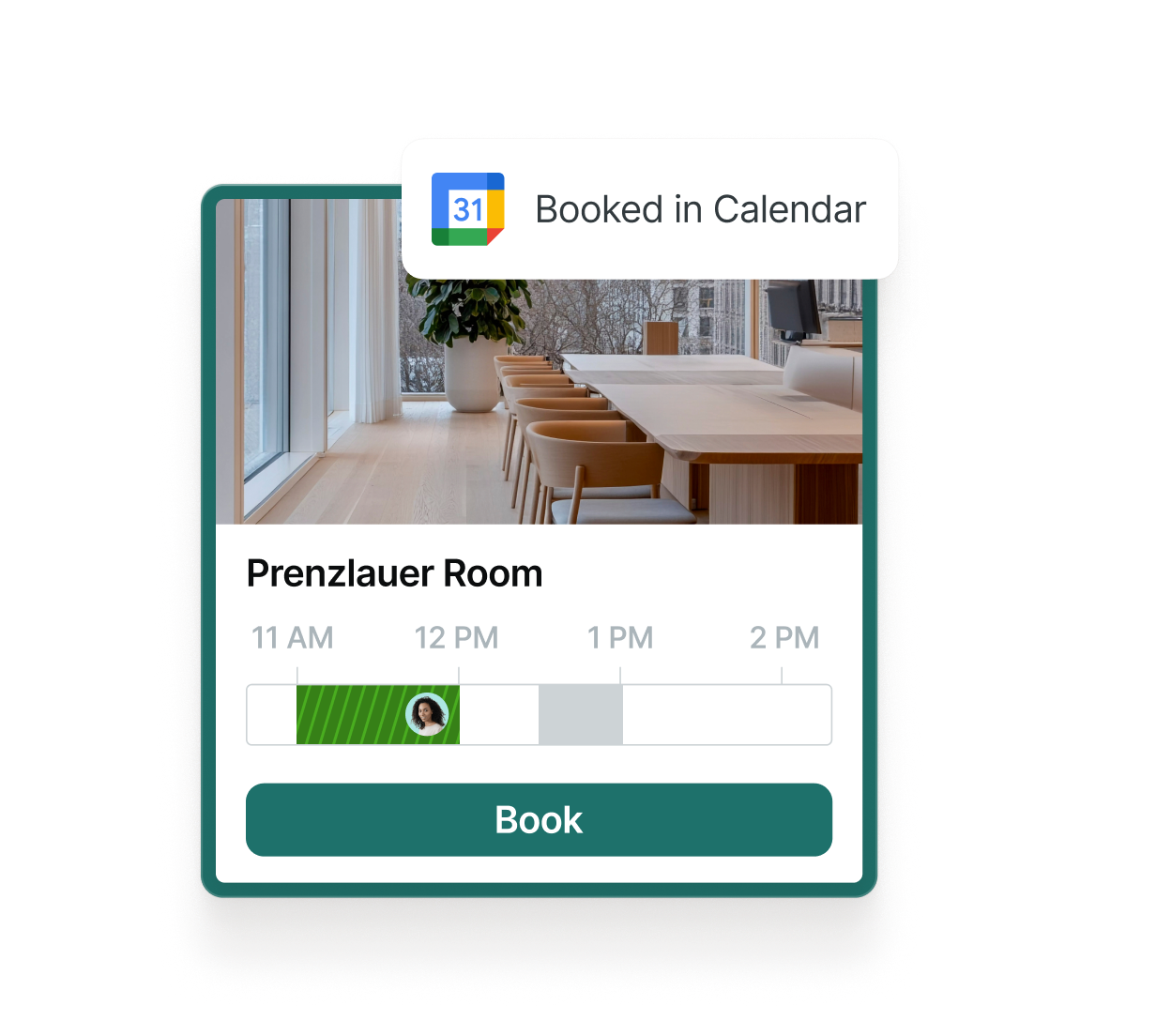 Durch die Integration von PULT mit Google kann dein Team aus dem bekannten Kalender heraus Arbeitsplätze und Räume buchen.